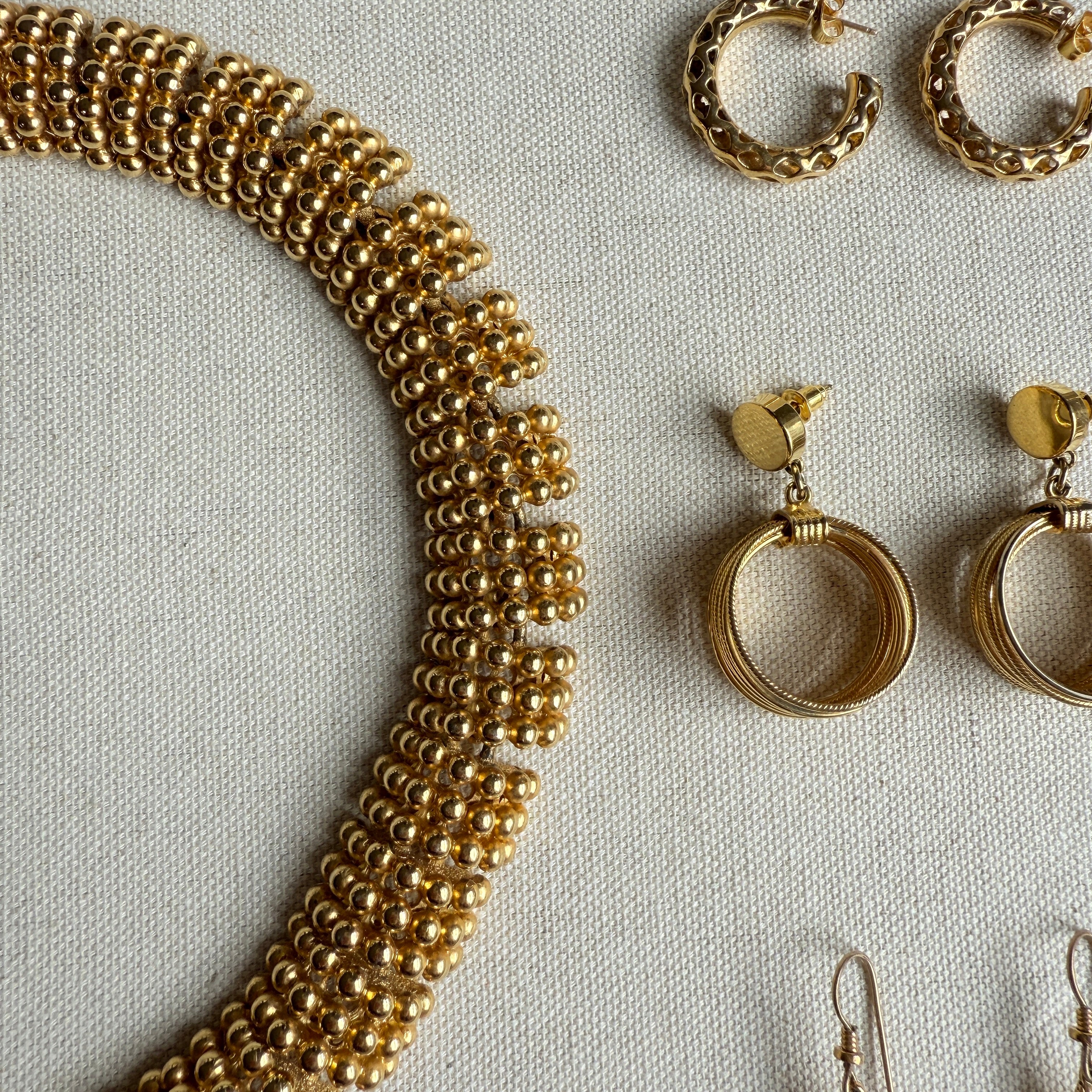Vintage Fernando Originals Wide Dimensional Gold Tone Beaded Choker Necklace