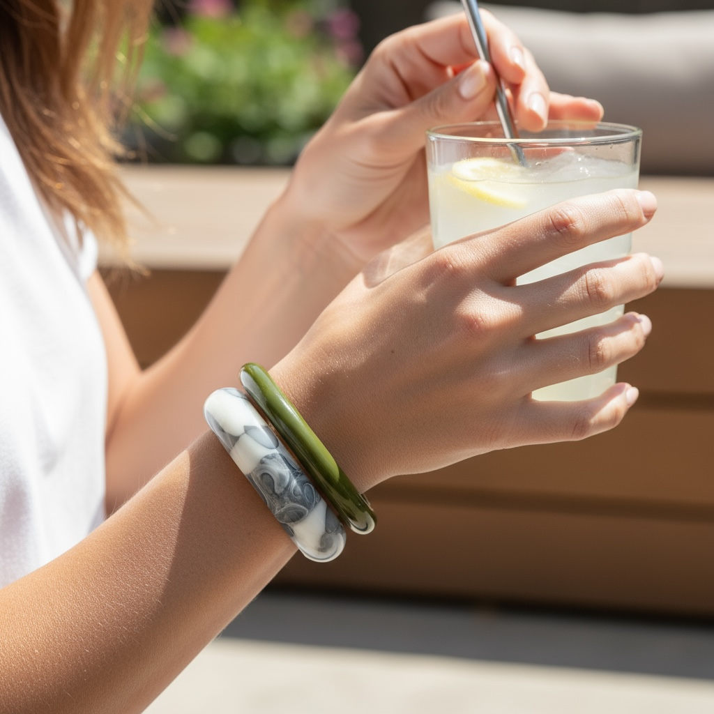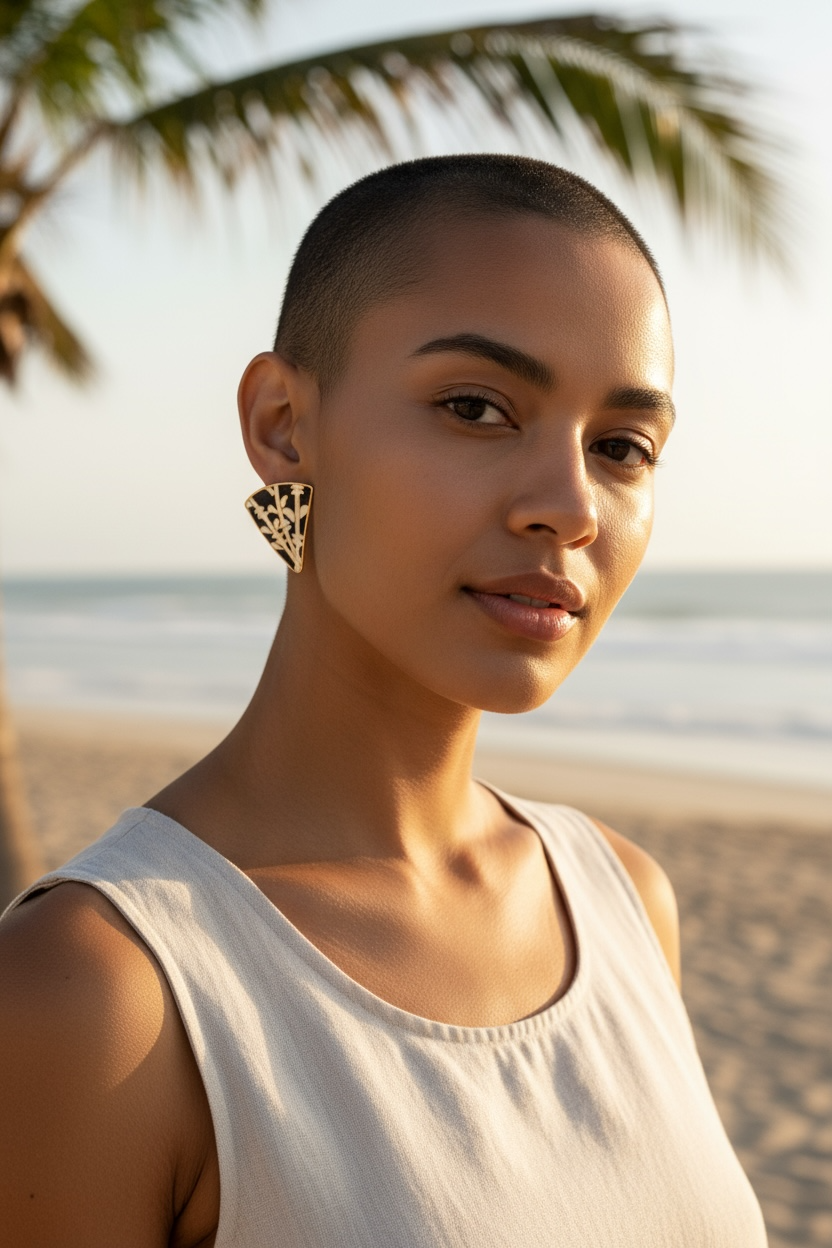 1980s Black & Cream Enamel Bamboo Fan Earrings, Gold Tone