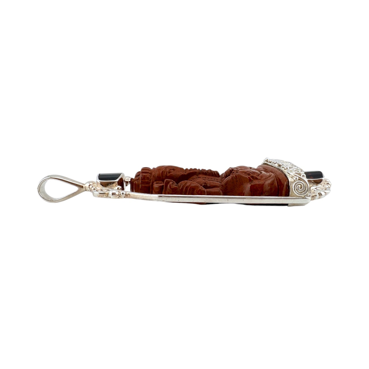 Intricately Carved Red Jasper Ganesha Pendant by Sajen, Accented with Faceted Garnets & 925 Sterling Silver