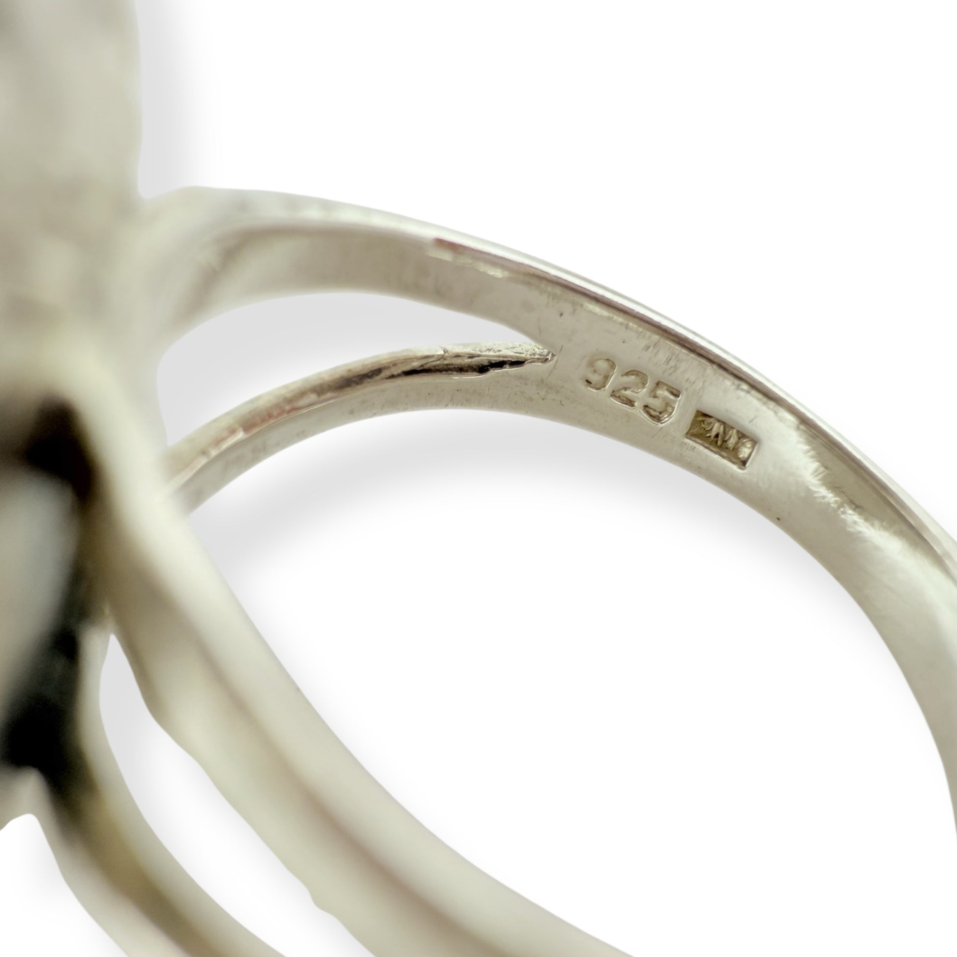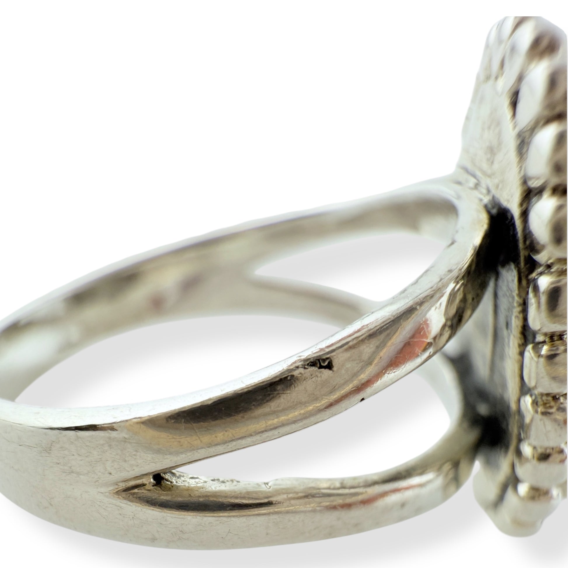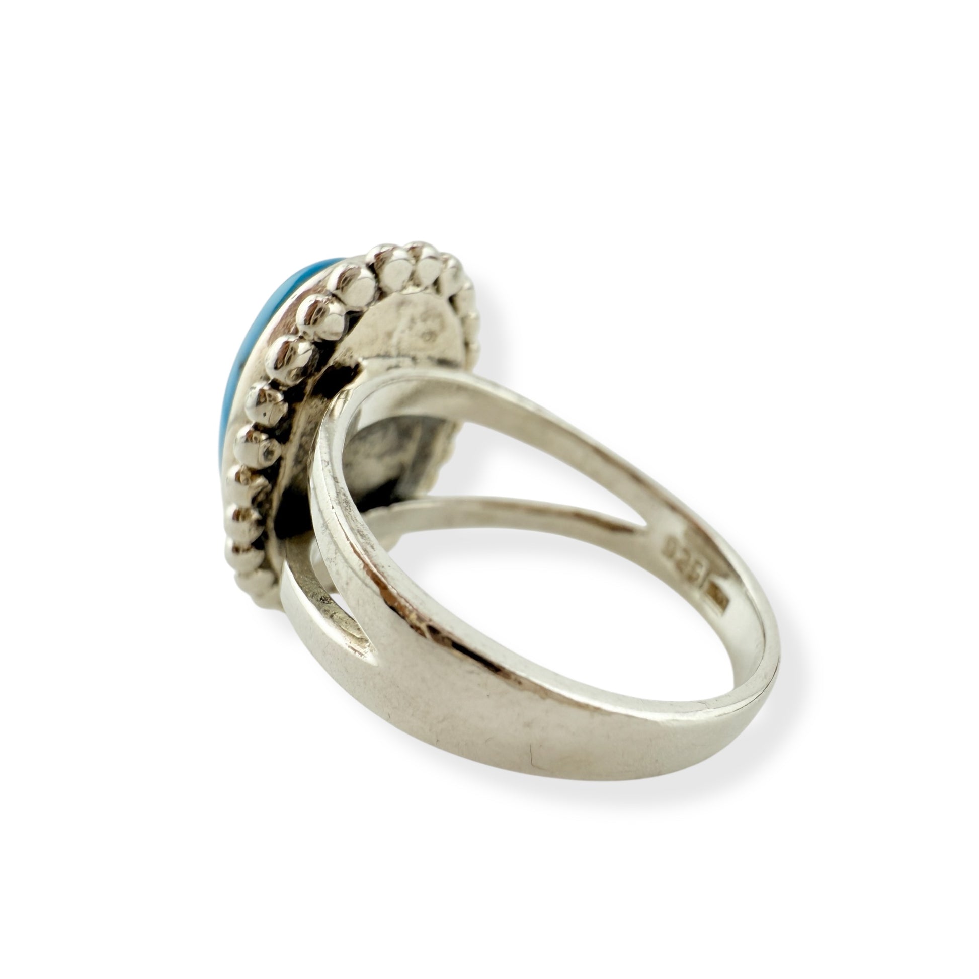 Vintage Oval Turquoise with Ball Beaded Border Sterling Silver Ring
